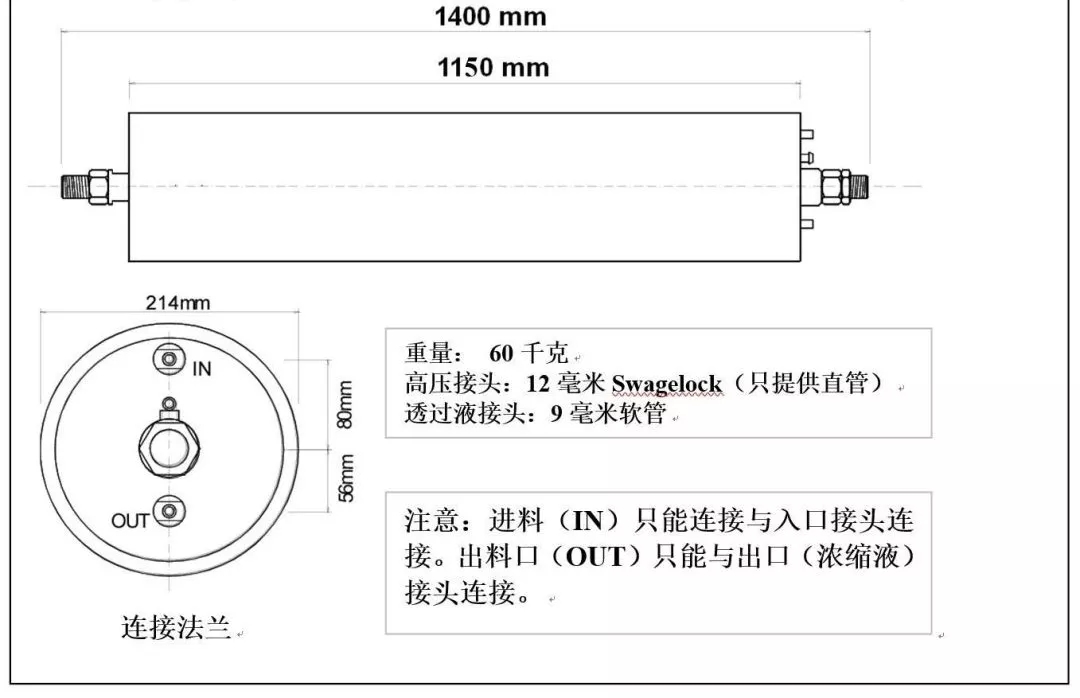 *警告!一旦膜組件浸水濕潤,應總保持濕潤狀态,禁止再變幹,否則膜片會損壞。